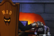 - When the exoskeleton of Inspector Gadget walks out of the flames, his right arm is edited off the center frame for a few intermittent moments.