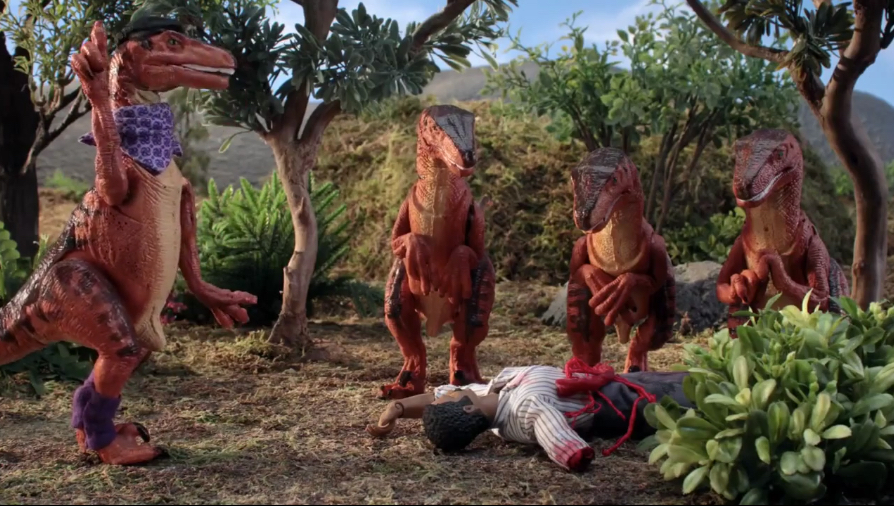 Characters: Robert Muldoon, Dr. Alan Grant, Instructor Velociraptor, First Velociraptor, Second Velociraptor, Crystal, Ray Arnold